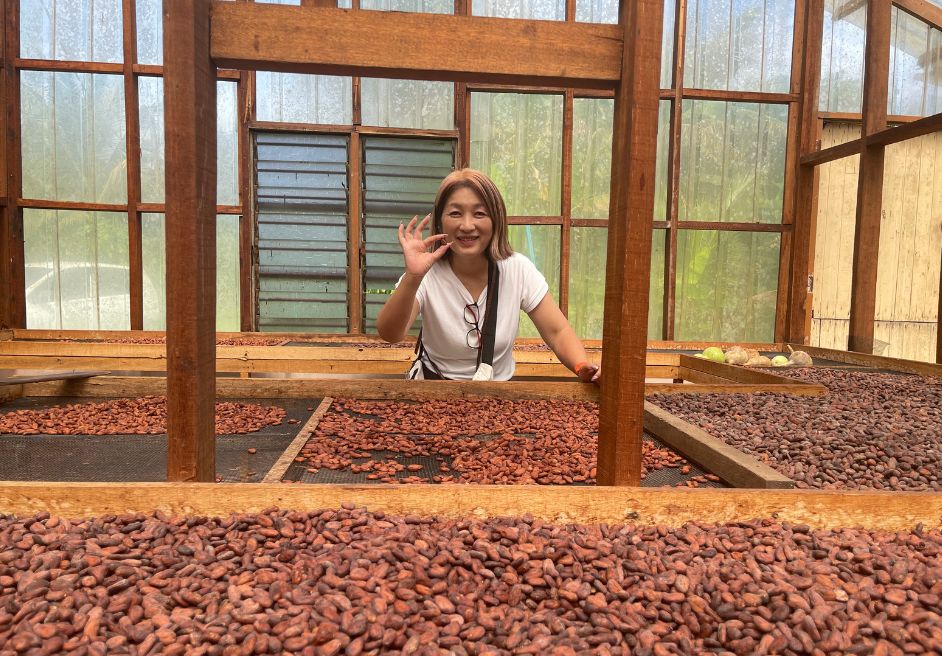 For example, the leaves of the cacao plant were thinner and more delicate than expected, and easily swayed in the breeze. And the sight of small flowers blooming directly from the trunk was so unique that it overturned my concept of plants. The importance of temperature, humidity, and time management during the fermentation and drying processes was also emphasized, and I realized how much time and effort goes into creating the flavor of cacao.