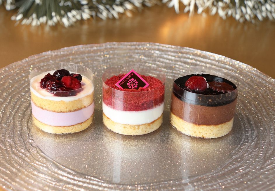NATUVIEWのクリスマス限定ミニケーキセットは、砂糖を一切使わず、ラカンカやアルロースといった自然由来の甘味料で仕上げました。糖質を気にする方や健康を大切にする方でも安心して楽しめるように設計しながらも、味わいは本格派。濃厚なレアチーズ、ビターなチョコムース、華やかなベリーショートの3種類が織りなす彩は、まさにクリスマスの食卓にぴったりです。ホールだと食べきれないという方にもおすすめです。家族や友人、大切な人と囲むひと時に、体にやさしく、華やかで特別なケーキをどうぞ。