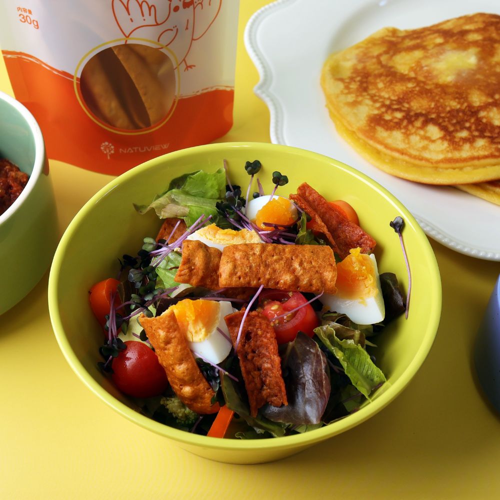 トレーニング後の栄養補給はもちろん、糖質を控えたい間食や、忙しい日の栄養チャージにも最適です。サラダチキンより手軽に、プロテインバーよりおいしく、毎日続けられるおいしさを実現しています。そのまま食べてももちろん、砕いてサラダにトッピングすれば、手軽にたんぱく質をプラスでき、食感と風味のアクセントにもぴったり。
